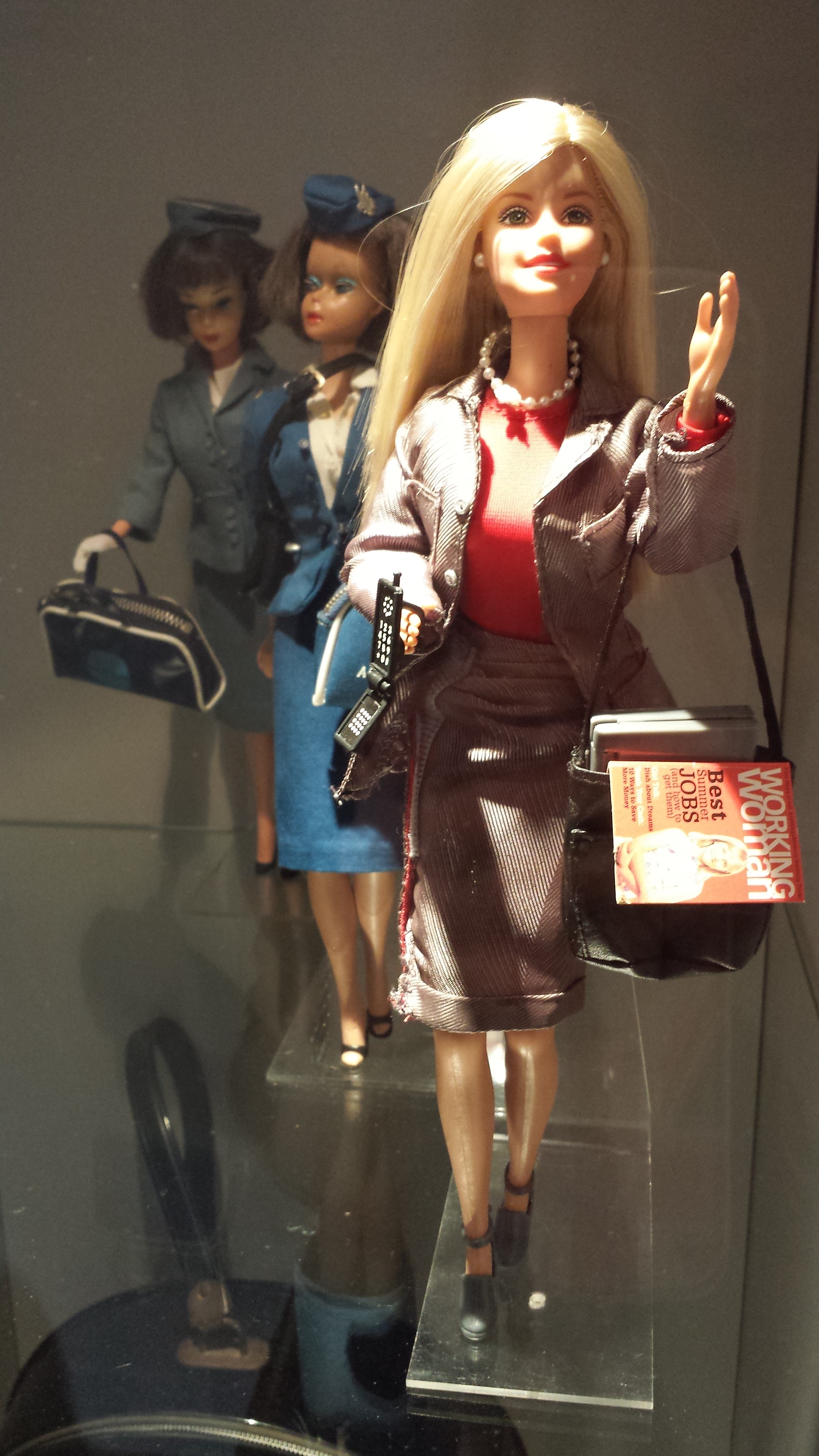 En dus stonden er her en der in de vitrines van het museum een aantal Barbie’s bij de tassen. Al waren de meeste Barbie’s te vinden op de begane grond. Zowel oudere als jongere vrouwen liepen er glimlachend omheen. ‘Ik voel me weer even acht’, riep ik tegen een vriendin die precies hetzelfde gevoel had.