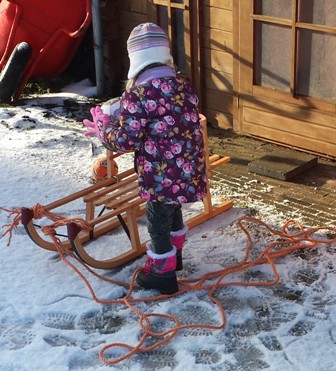 Het humeur werd nog beter toen mijn vriend inderdaad die slee erbij pakte, zij erop kon gaan zitten en mijn vriend met mijn dochter door de buurt rende alsof hij aan het trainen was voor een een belangrijke bokswedstrijd. De buren vonden ‘t erg vermakelijk. En even vroeg ik mij af wie de sneeuw eigenlijk leuker vond: mijn dochter of toch mijn vriend.