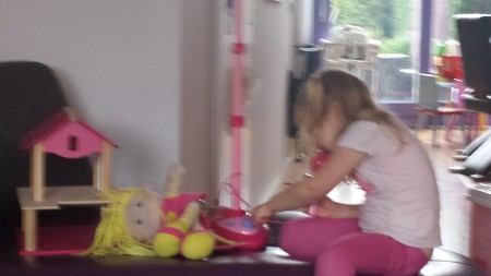 Gelukkig voor mijn dochter arriveerde de pizza. En nadat we veel stukken naar binnen hadden gewerkt, was ‘t tijd om naar huis te gaan. In de auto sukkelde mijn peuter in slaap. Maar niet voordat ze had gezegd ‘dat ze thuis wilde zingen met de K3 microfoon.’