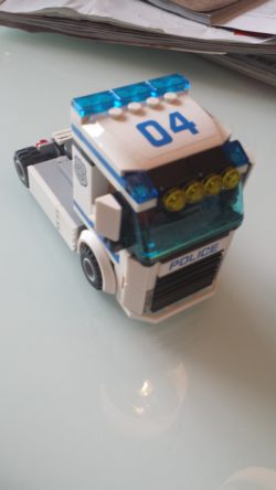 Er zat niets anders op dan de kleuter te helpen. Al eindigde het ermee dat – nadat we eerst de legomannetjes in elkaar hadden gezet – mijn dochter vooral speelde met die mannetjes en ik de politietruck in elkaar kon zetten.