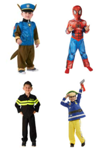 Paw Patrol set (24,99), Spiderman set (19,99), politiemanpak (14,99), Brandweerman Sam set (27,99)