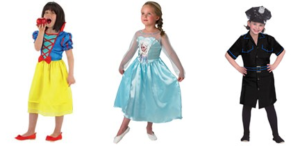 Sneeuwwitje set (12,99), Elsa jurk (24,99), Politie-outfit (14,99)