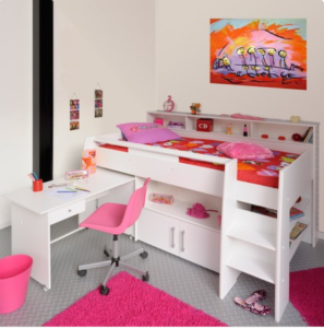 Maar uiteindelijk kwam-ie een leuke halfhoogslaper tegen. Lekker basic, maar mooi wel met kastjes eronder en een bureautje erbij. Ideaal.