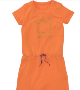 Maar hé, misschien had de HEMA nog wat. Vorig jaar hadden ze immers ook een uitgebreide collectie. Daar ben ik snel naar toe gelopen. En wat denk je? Daar hadden ze gewoon nog oranje jurkjes hangen met teksten als ‘Queen to be.’