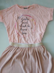 Kon ik met mijn moeder in alle rust outfits uitzoeken voor de meisjes. En dat is fijne zomerkleding geworden. Setjes ook nog. Op wat koudere dagen een legging en vestje erbij en klaar ben je.