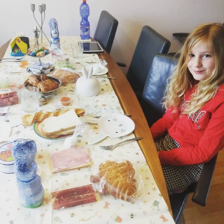 En we hadden nog meer geluk, want van mijn schoonmoeder hadden we de dag ervoor een heus Paasontbijt gekregen met allerlei lekkere broodjes, beleg en drinken. Stiekem hadden we er al van gesnoept, maar met Pasen hebben we echt álles soldaat gemaakt.