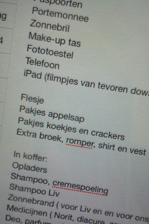Morgen gaat een vriendin trouwen, dus mijn vriend en ik zijn een middag en de avond weg. De oplossing? De twee meisjes gaan logeren bij hun opa en oma. Hartstikke leuk natuurlijk, maar ik was vergeten hoeveel dingen je ook alweer mee moet nemen als kleine kinderen uit logeren … [Read more...] about Hoe kleiner het kind, hoe meer je meeneemt …